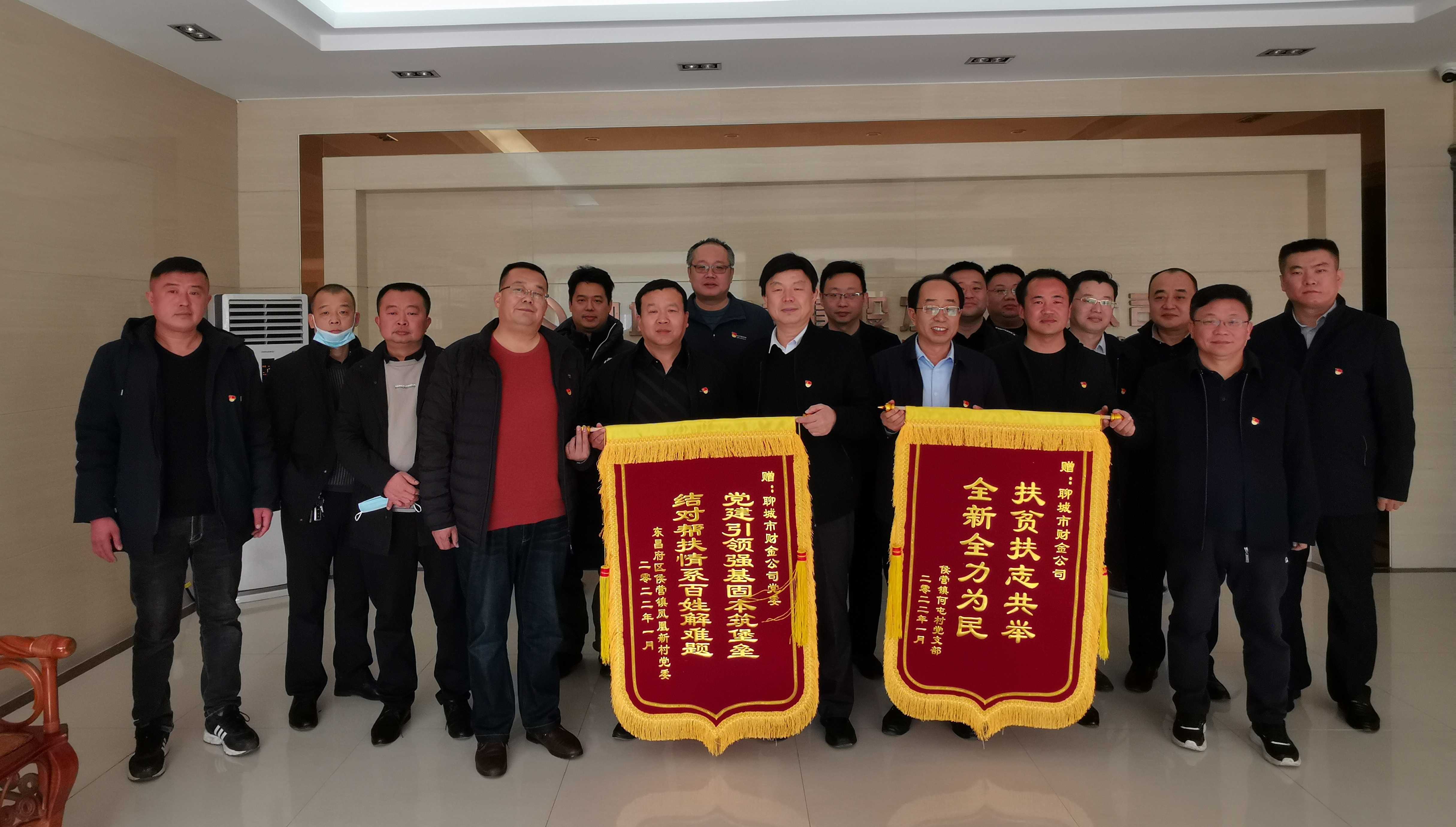 1月25日上午,東昌府區(qū)侯營鎮(zhèn)鳳凰新村黨委一行來到市財(cái)金公司,將兩面鮮紅的錦旗送到公司黨委書記、董事長張繼堯手中,對(duì)財(cái)金公司派駐第一書記助力鄉(xiāng)村振興、開展新春送溫暖走訪慰問活動(dòng)表示感謝。雙方召開座談會(huì),就“雙聯(lián)共建”工作進(jìn)行溝通交流,會(huì)議由公司黨委副書記、董事、總經(jīng)理于雪格主持,公司班子成員及黨員代表參加會(huì)議。